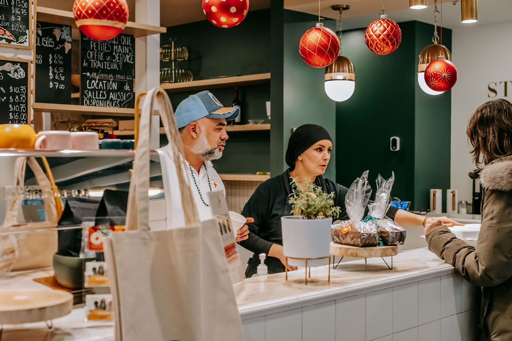 Situé à l'intérieur de l'entreprise d'insertion Petites-Mains, le Café-traiteur Des petites-Mains offre un programme de formation d'aide cuisinière qui permet à des femmes sans emploi de se spécialiser afin de trouver un emploi en restauration, tout en suivant des cours de français. Il propose un service traiteur et la location de salles.